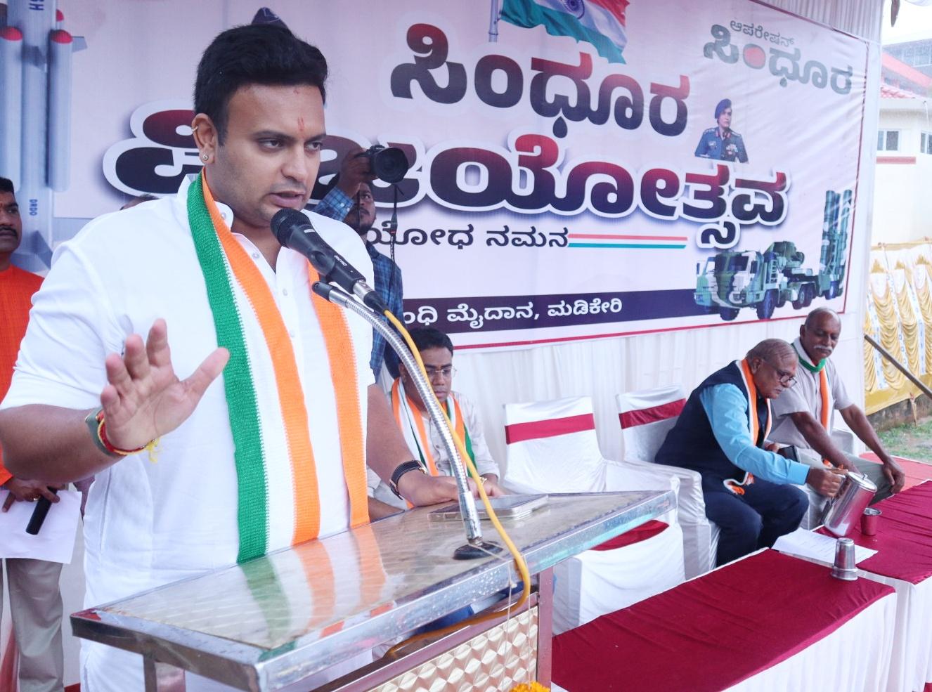 Speaking as the chief guest, Mysore-Kodagu MP Yaduveer Wodeyar stated that the Indian Army has taught a lesson to Pakistan, which was aiding terrorists and committing atrocities in India, through Operation Sindoor. Today, we are happy with our armed forces that are effectively guarding the borders. It is the responsibility of all of us to respect and support the soldiers, he noted.