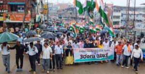 The soldiers of the Indian Army, who were responsible for the successful Operation Sindoor against Pakistan-sponsored terrorists, were paid tribute in Madikeri through ‘Sindoor Vijayotsava’. The public marched along with national flags displaying posters saying ‘Ten thousand salutes to the Indian Army’. Retired officers and soldiers of the Indian Army walked with their titles and bats. The 300-foot long national flag in the procession attracted attention.