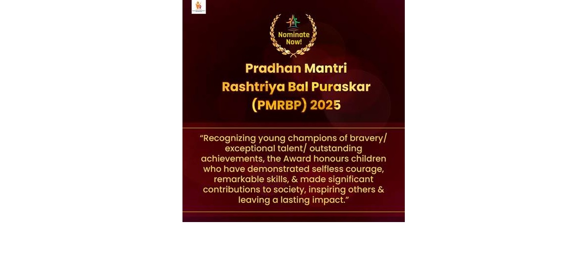 Madikeri:  The Ministry of Women and Child Development, Government of India, has invited applications for the Pradhan Mantri Rashtriya Bal Puraskar, for the year 2025.
