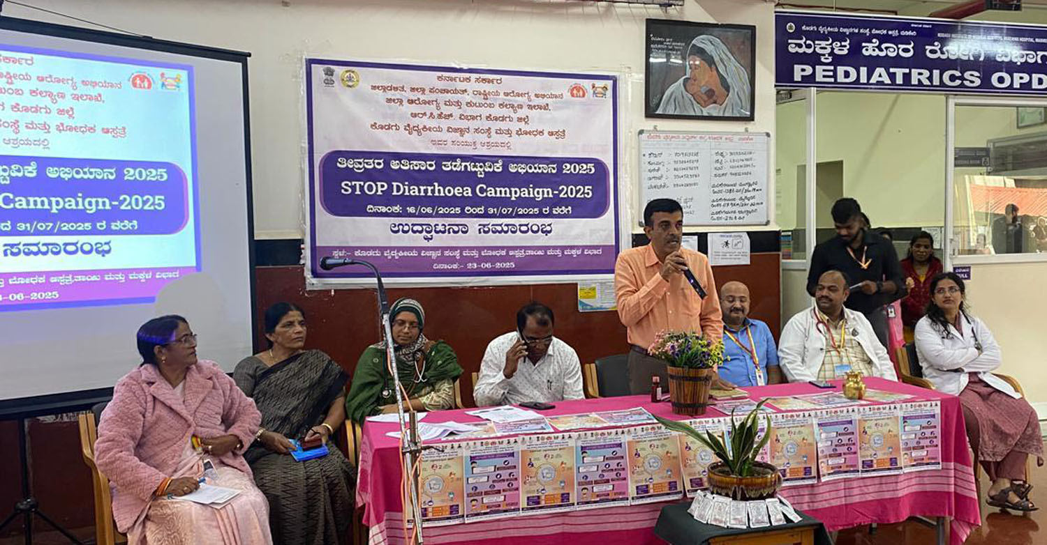 The inauguration of the Diarrhea Prevention Campaign was held on Monday at the Children’s Department of Kodagu Institute of Medical Sciences and Teaching Hospital. The campaign is a joint initiative of the Institute, its Children’s Department, and the District Health and Family Welfare Department. The campaign, which will run until July 31, aims to reduce child mortality caused by diarrhea. As part of this initiative, ASHA workers will visit every household with children under five, providing two ORS packets and one packet of zinc tablets per child. Zinc tablets must be administered for 14 days exclusively when a child is affected by diarrhea. Dr. Satish Kumar, District Health and Family Welfare Officer, emphasized that every parent must be aware of this protocol. He urged parents to take their children to the nearest government hospital if recovery is delayed.