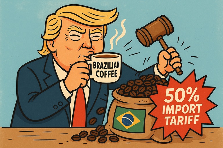 The mercurial policies of the President of the United States have finally hit the coffee industry. Coffee prices are on the rise after an unexpected announcement of a sweeping 50% tariff on imports from Brazil, the world’s largest coffee producer. As expected, this triggered a tumultuous surge in global commodities markets and set off fresh volatility in futures trading.