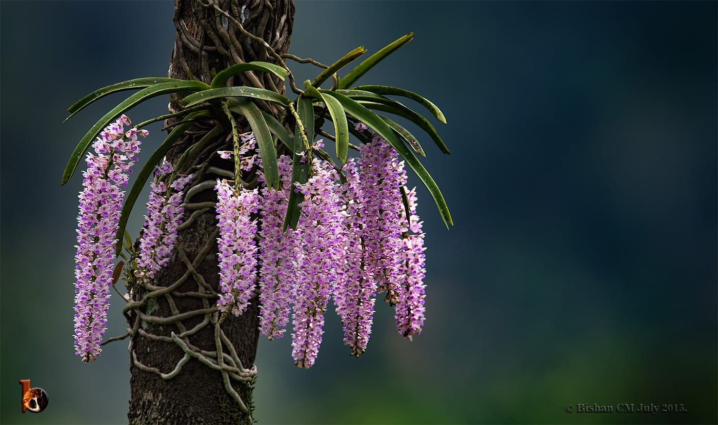 Seen here is an Explosive blooming of Rhynchostylis retusa (Foxtail Orchid) called as “Seethe dande” in Kannada (Sita From Ramayana and Dande = Garland because of her expertise in weaving Garlands) named after the long inflorescence of this orchid which can grow upto 2 feet.