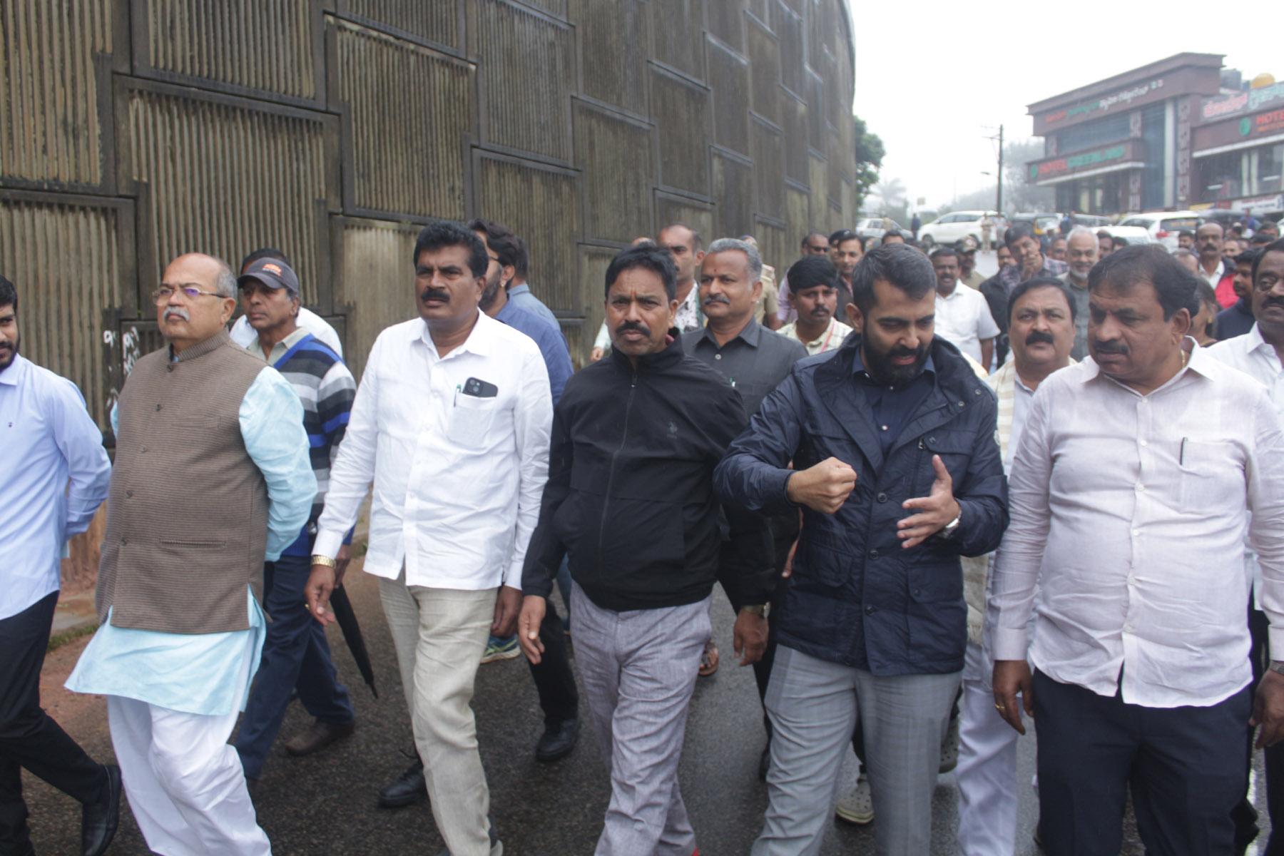 During discussions, it was noted that the National Highways Department should have been consulted during the building’s construction. The Petitions Committee had earlier visited the site in March 2024, and the current visit, led by Chairman Lamani, reinforced the urgency of completing the work before Dasara.