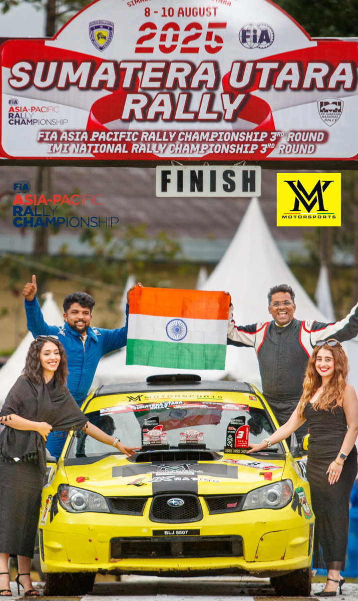 Representing VM Motorsport, backed by Vamcy Merla, Abhin Rai from Kodagu and co-driver Srikanth Gowda impressed in their international debut, finishing 2nd in the NVA Category, 2nd in Junior APRC, 3rd Runner-Up in M1 Category, and 8th Overall in the APRC standings.