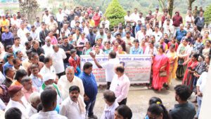Leaders of the Devotees’ Forum, including T.M. Ayyappa, Pundarikaksha, and Rajashekar Satish, along with a large number of devotees, participated in the protest and submitted memorandum to the Kodagu Deputy Commissioner.