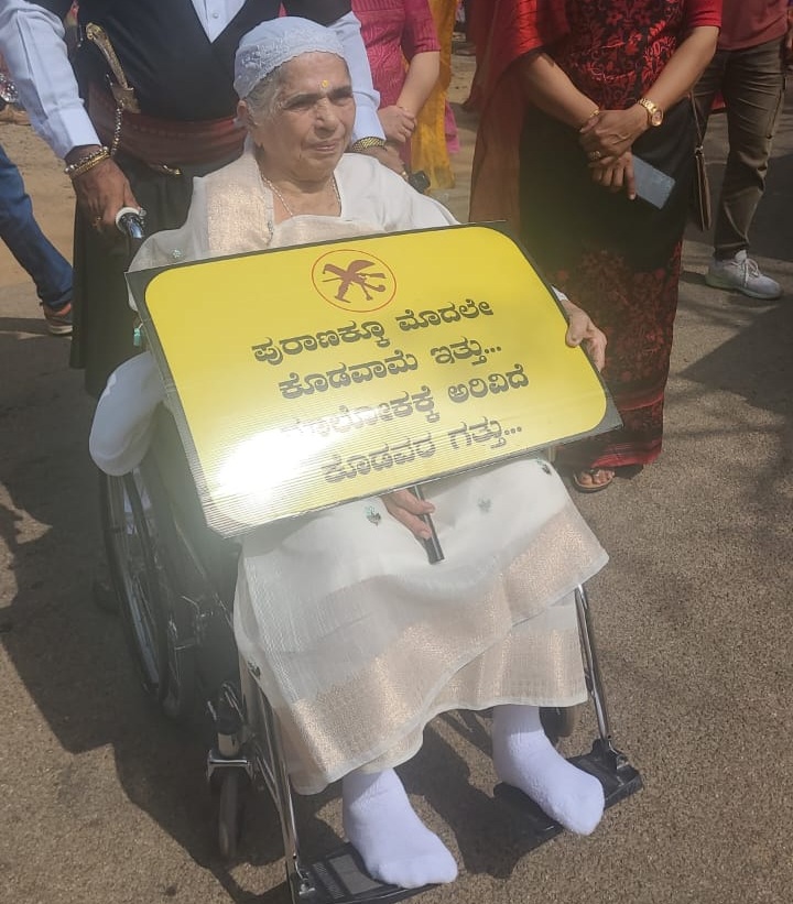 The sea of traditionally dressed Kodavas showcasing the best of their cultural heritage, was a visual treat. Call it an accident-of-birth, but if one was born a Kodava – this occasion would have been a proud moment – peaceful, disciplined, positive-minded, genial march from Mekeri to Madikeri. There was purposeful unity in every step taken with quiet dignity and determination to protect our inheritance and identity – most of all Kodavaame – the Kodava way of life. Speaking to elderly Avvayya’s and Ajja’s who determinedly made their appearance on many legs of the Walkathon – they glowed with pride basking in the glory of the determined participation by Kodavas from rank and file.