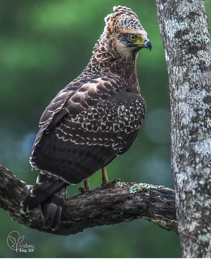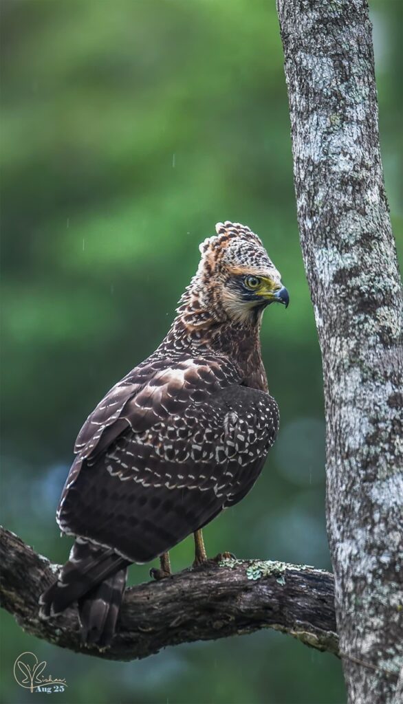 The crested serpent eagle (Spilornis cheela) is a medium-sized bird of prey that is found in forested habitats across tropical Asia. This one here, is a Juvenile.