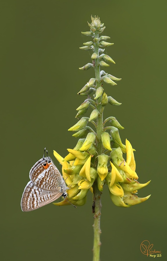 Seen here sitting on its larval host plant Crotalaria pallida (Smooth Rattlepod) belonging to pea family.