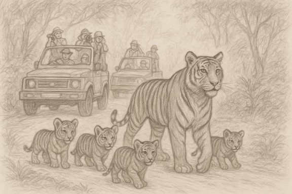 And so, she adapted. Each day, she led her cubs along secret paths, across ravines, and through thorny underbrush to avoid the jeeps. She taught them to still their bodies at the first rumble of an engine, to vanish into undergrowth without a sound. Slowly, the cubs learned, trading their carefree play for the lessons of survival in a jungle no longer free.