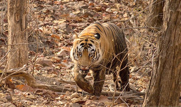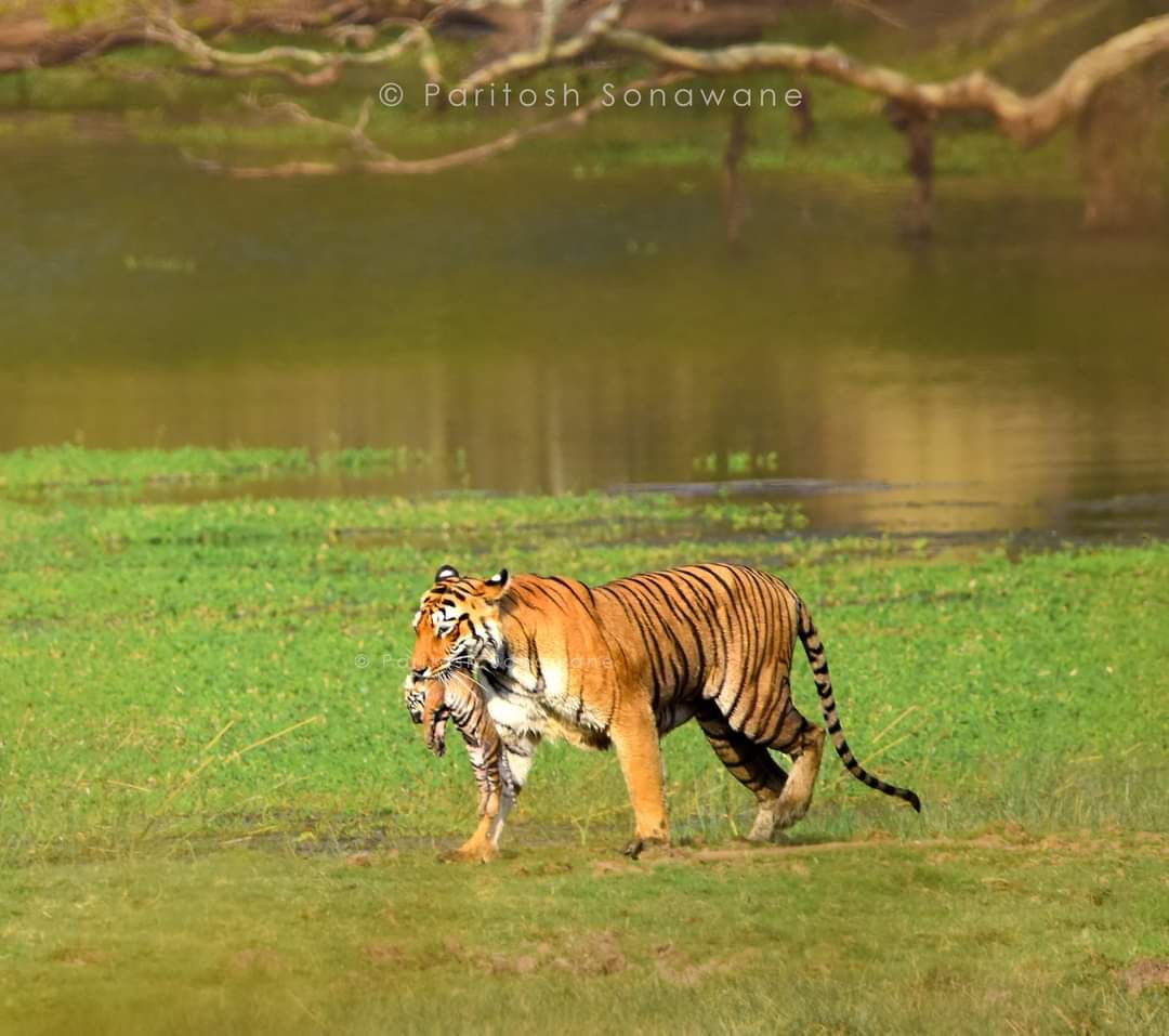 7. In Tadoba, Tigress Choti Tara carrying a cub to safety!