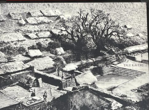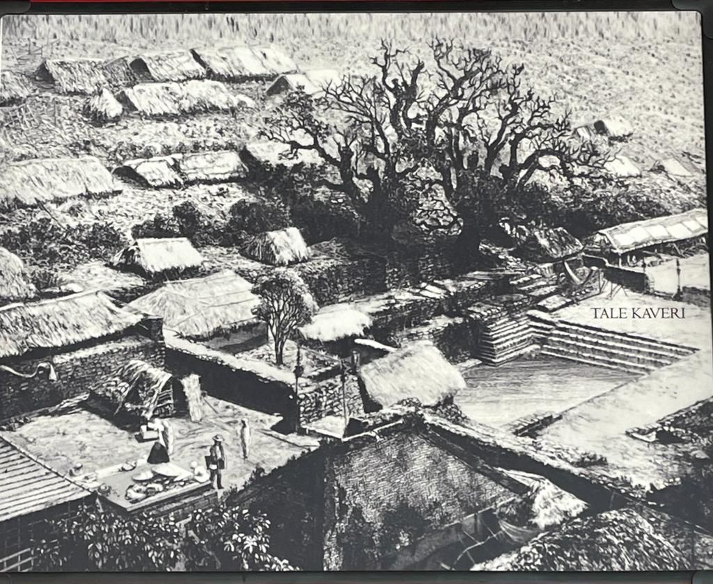 This is what Talekaveri looked like 200 years ago. The huts were temporary structures on the slopes of Brahmagiri hill adjacent to the source. Courtesy – The Vanishing Kodavas Ⓒ Kaveri Ponnapa