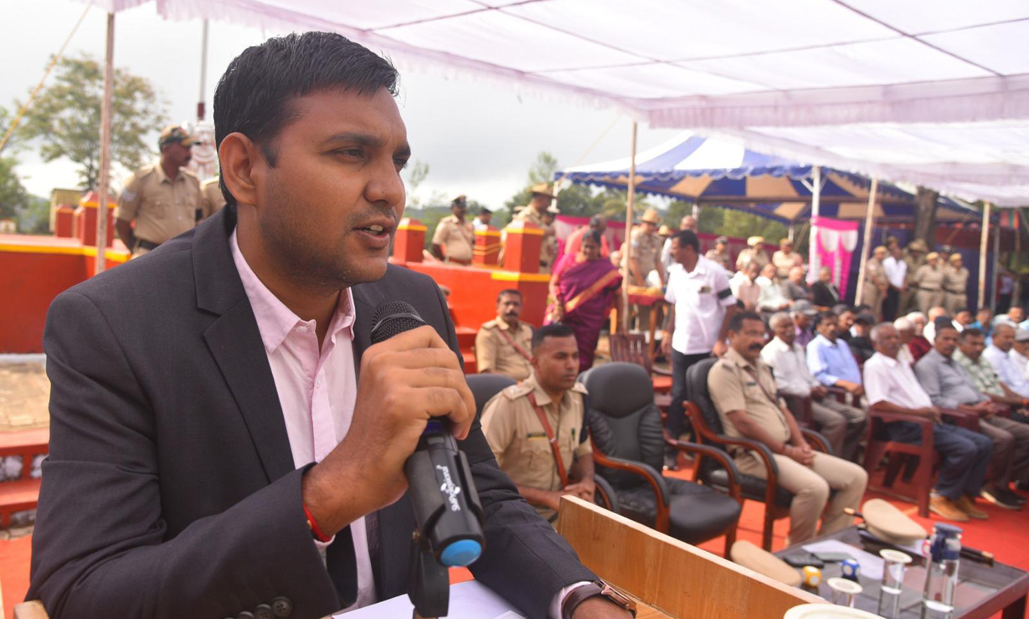The chief guests included G.P. CEO Anand Prakash Meena, District Superintendent of Police K. Ramarajan, Additional Superintendent of Police Barike Dinesh Kumar, Deputy Superintendent of Police Mahesh Kumar, Police Inspector I.P. Medappa of the Intelligence Division, P.A. Nanjappa representing the District Police Clerical Staff, Appiah on behalf of Retired Police Officers, Monnappa representing Retired Army Officers, Sanjay Jatti representing the District Prison, P. Kalavathi as President and Anitha Poovaiah representing the CMC, C.T. Joseph on behalf of the Lawyers’ Association, Chinnaswamy on behalf of the Media, Lalitha Raghavan on behalf of the Rotary Organisation, Madan representing the Lions Organisation, Santosh representing the Businessmen’s Association, Dinesh representing the Hotel Association, M.N. Muthappa representing Kodava Societies, Surtale Somanna representing Gowda Societies, Amin Mohisin representing the Muslim Unions, Govindaraju representing Police Sub-Inspectors, Band Master Chennakeshava, Dhananjaya representing the Non-Commissioned Division, Sumathi representing the Women Police, and Major Cariappa representing Retired Army Officers. All offered floral tributes at the Police Martyrs’ Memorial and paid homage.