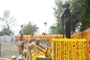 Dignitaries and guests paid their respects by offering floral tributes at the Police Martyrs’ Memorial. Parade Commander R.P. Ganesh led the observance and received permission from the chief guest to begin the proceedings.