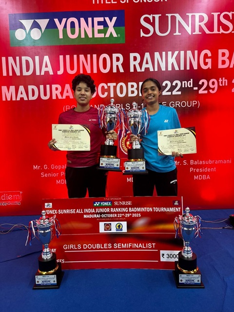 Karnataka’s top-ranked badminton player, B. Diya Bheemaiah, clinched the bronze medal in the doubles category at the All India Junior Ranking Badminton Tournament held in Madurai from October 22 to 29.