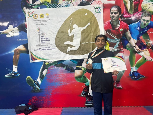 Master B. B. Vishal Uthappa won the silver medal in the Under-14 boys’ singles badminton event at the Fourth Karnataka Mini Sports Meet held at Kanteerava Stadium, Bengaluru, from November 5 to 7. The event was organised by the Department of Youth Empowerment and Sports and the Karnataka Olympic Association.
