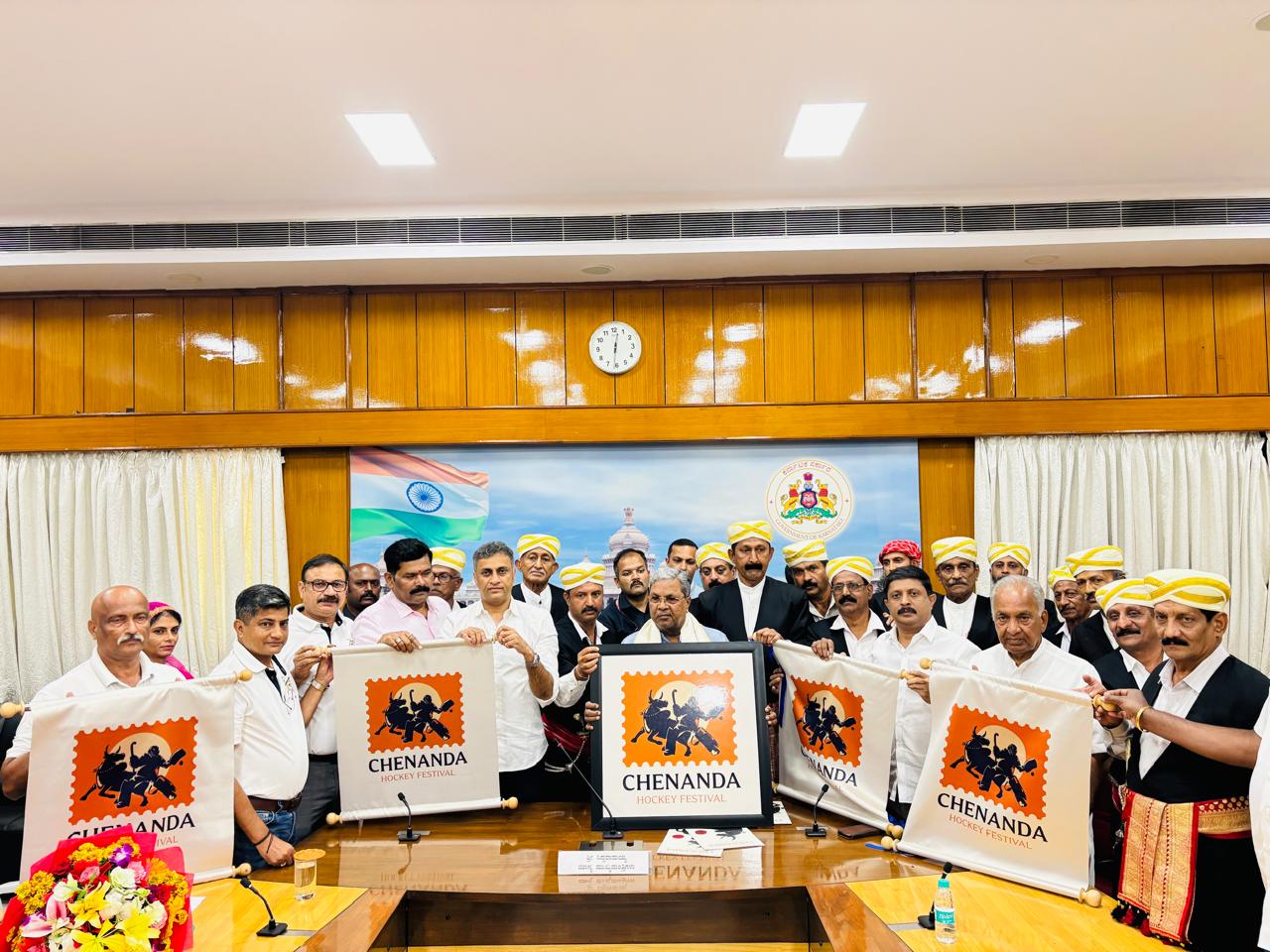 Chief Minister of Karnataka Siddaramaiah released the logo of the Chenanda Hockey Tournament at his official residence, Krishna, in the presence of Chief Minister’s Legal Advisor and Virajpet MLA Ajjikuttira S. Ponnanna. The Chief Minister said that “Kodavas mean hockey, and hockey means Kodavas,” and announced a grant of one crore rupees for the Chenanda Hockey Tournament.