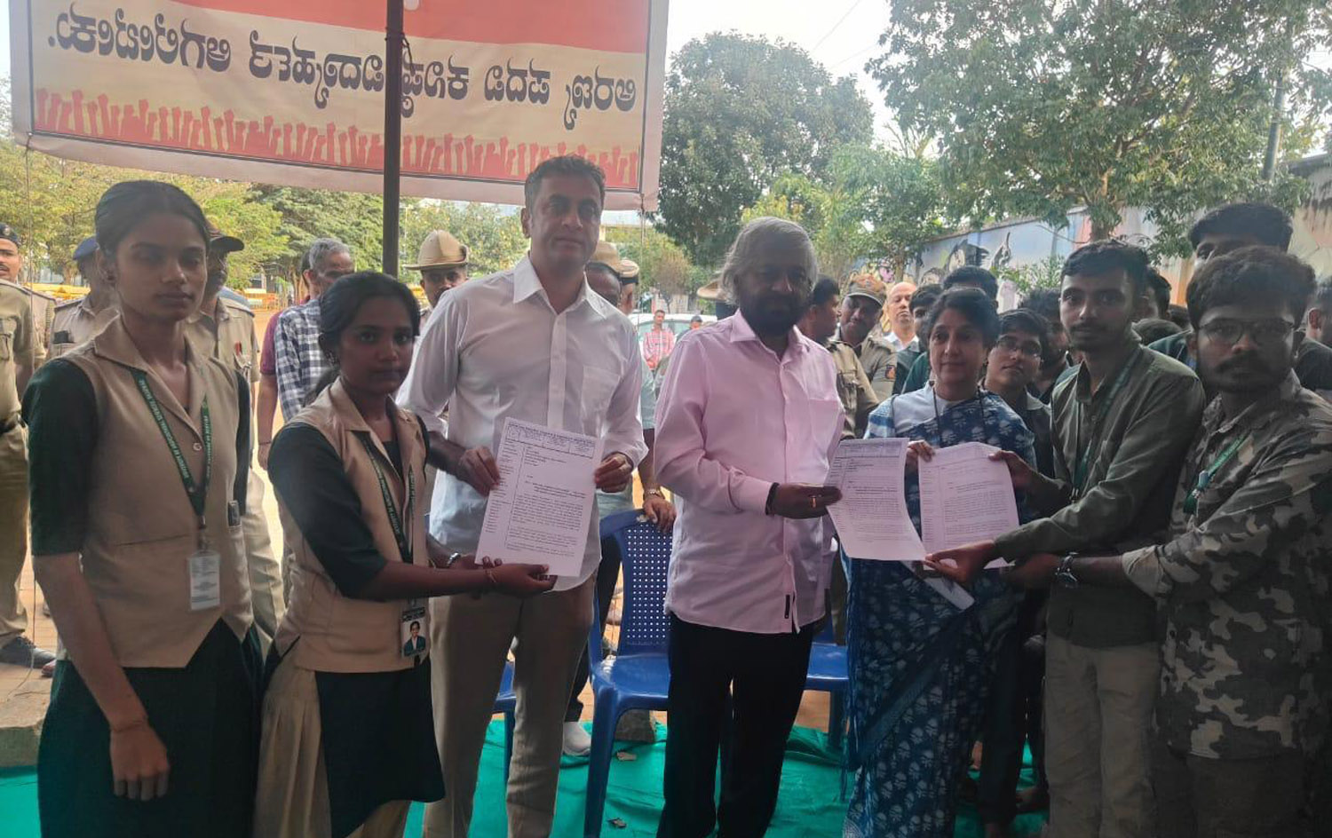 Forest Minister Shri EshwarKhandre and Legal Advisor to the Hon’ble Chief Minister and MLA from Virajpet constituency Shri Ajjikuttira S. Ponnanna visited the protest site of the Karnataka Forestry Students and Graduates Association and assured the students that their petition would be accepted and their demands examined.