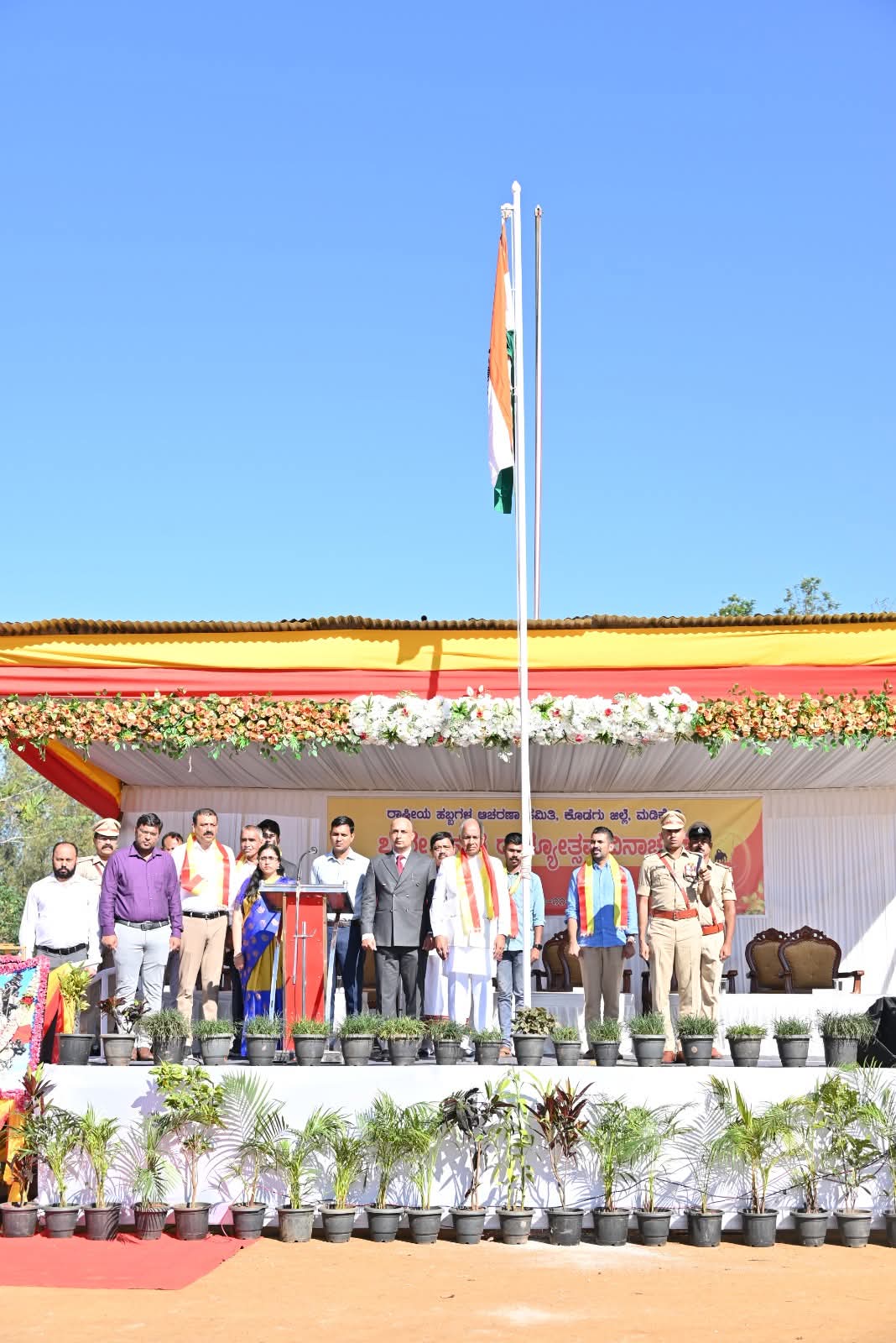 A parade was held by the police, NCC, Home Guards, Scouts and Guides, and Seva Dal. Students from various schools presented cultural programmes. A procession was taken out from Madikeri Fort to the parade ground.