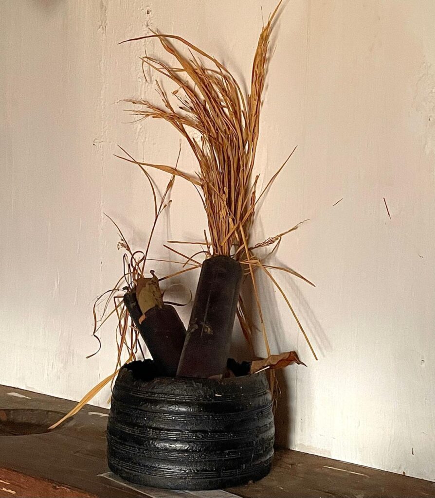 Our ancestors created the wetlands for paddy cultivation with their superhuman efforts and hard-work over generations….well before the Gods and temples were built. It is for this reason that we pay our obeisance first to our GuruKaronas and the AineMane is exclusively their abide with the adjoining Kaimada.