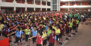 The assembly began with Chengappa administering the National Pledge, followed by Sathvik Somanna, who led the recitation of the Preamble to the Constitution. The entire school joined in with pride, reaffirming their commitment to the guiding principles of justice, liberty, equality, and fraternity.