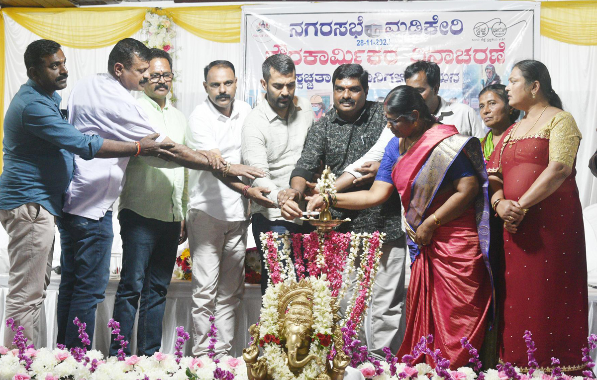 Civil Servants’ Day was celebrated at Ambedkar Bhavan, where MLA Dr. Mantar Gowda praised civic workers for keeping Madikeri clean and emphasised providing them with insurance, permanent employment and regular health check-ups.