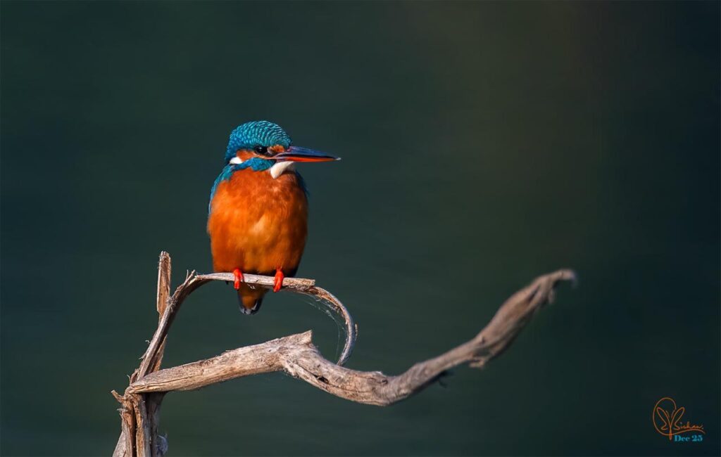 The flight of the kingfisher is fast, direct and usually low over water, shows an turquoise-blue “flash” down its back.
