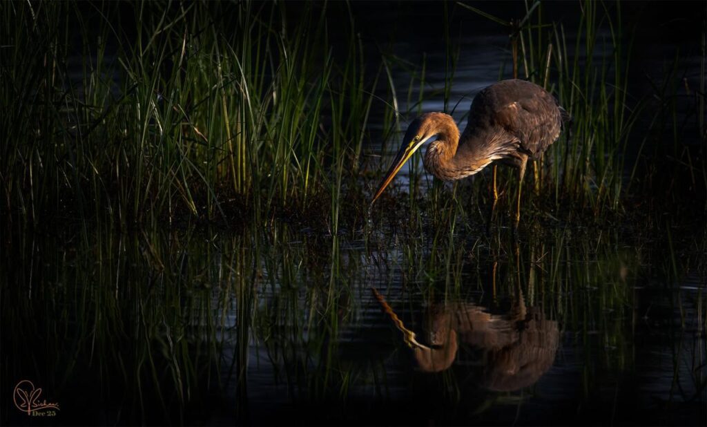 The purple heron (Ardea purpurea) is a wide-ranging species of wading bird in the heron family…. The scientific name comes from Latin ardea “heron”, and purpureus, “coloured purple”.