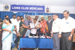 The felicitation ceremony was held at the Lions Association Hall in Madikeri, where Dr. Mantar Gowda was honoured with shawls, fruit tambuls and mementoes.