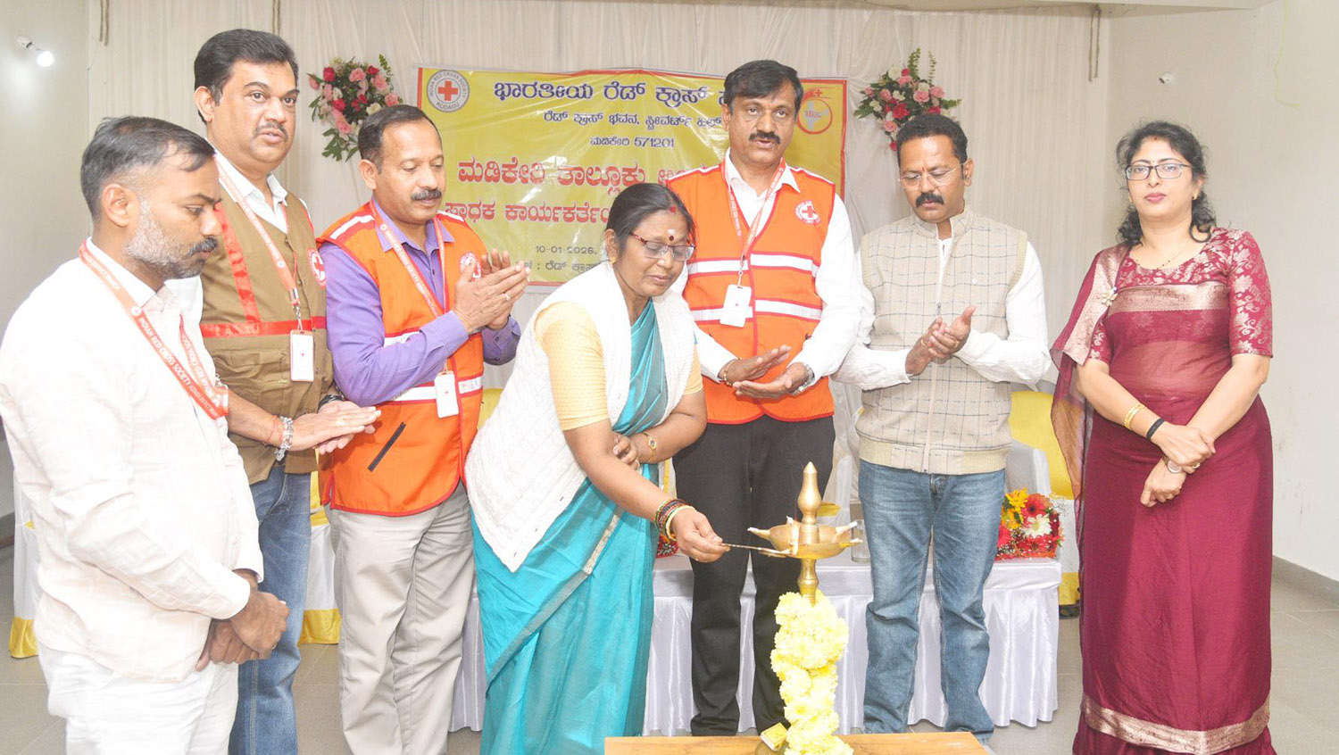 Madikeri Urban Development Authority President B.Y. Rajesh lauded the Red Cross for its humanitarian service at both international and local levels, noting its assistance to the homeless during the rainy season and in times of crisis. He also praised Anganwadi workers for their significant contribution to providing a strong foundation for early childhood development.