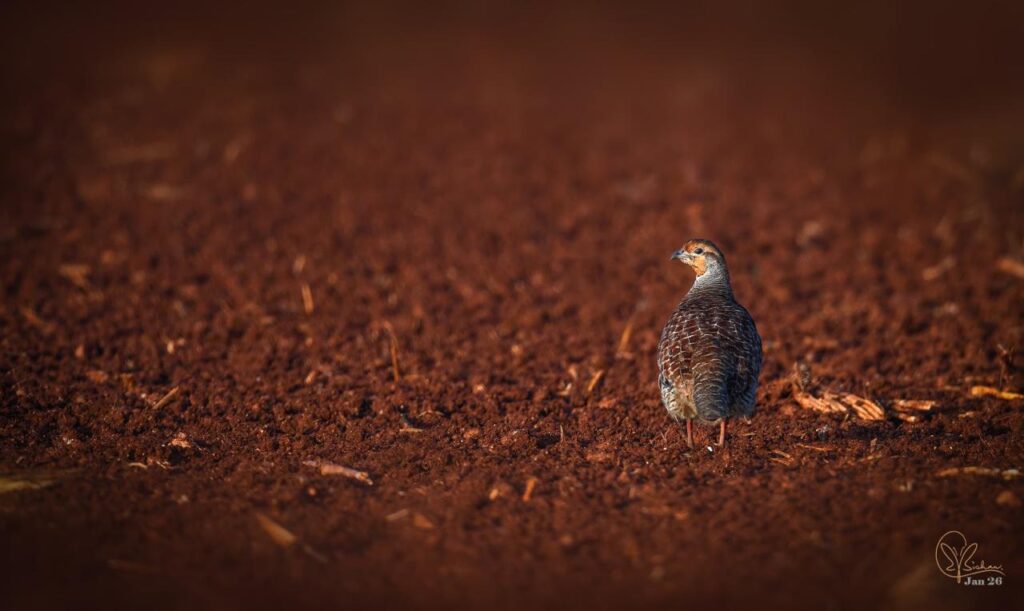 Grey Francolin (Ortygornis pondicerianus) -A small gamebird with an orangish face and fine barring throughout. It was formerly also called the Grey partridge. Occurs in open grassy areas such as dry grasslands, scrub, and agricultural land.