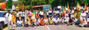 The Kodagu District unit of the BJP staged a protest in front of the Forest Department office, alleging that authorities have failed to take effective measures to prevent repeated wild elephant attacks in the district.