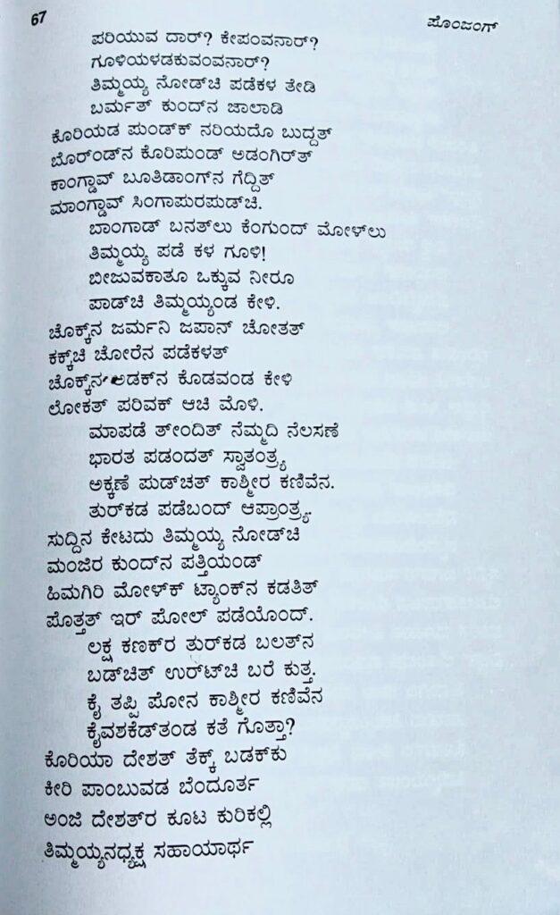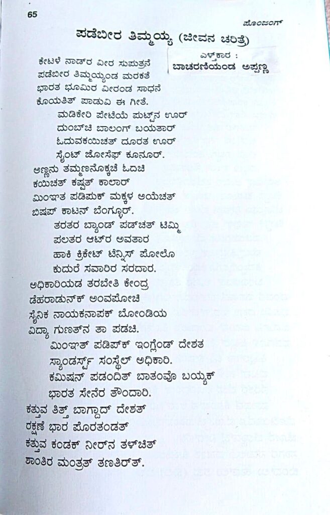 Today being the 120th Birth Anniversary of General Kodandera Thimayya, CLN is publishing poems written by Kodavas to honour him. The first poem in Kodava Thakk was composed by Bacharanianda Appanna Ajja on the life of the legendary General. An English translation by Mamatha Subbaiah is also provided.
