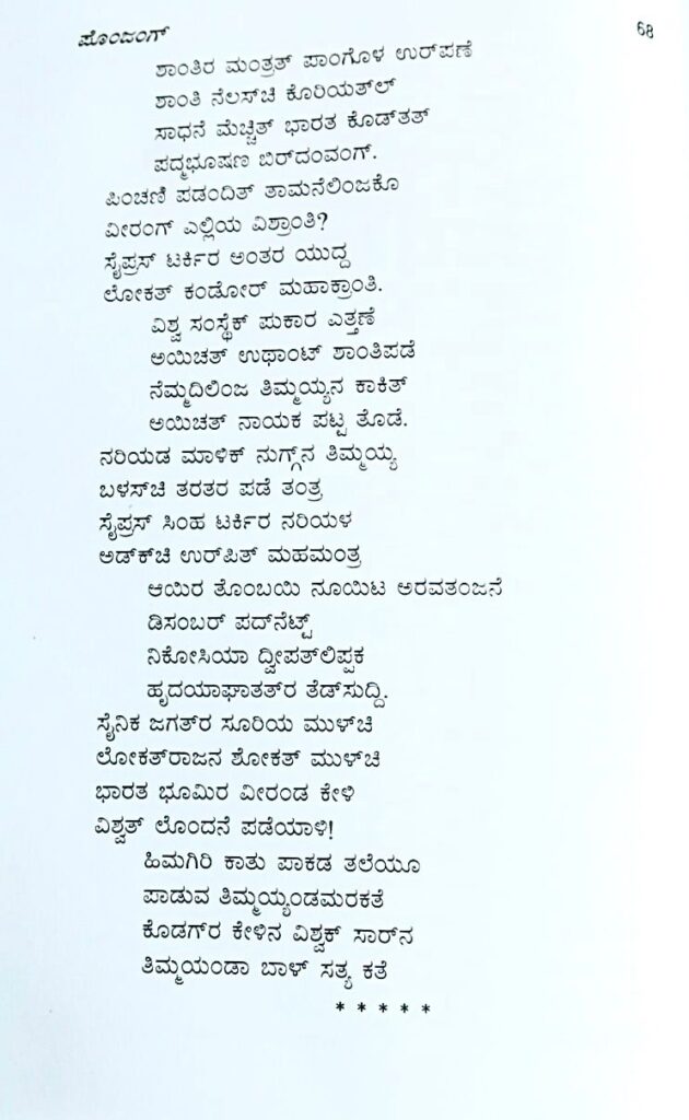 A separate poem dedicated to General Thimayya by Dr. Ravin Chengappa is also being published.