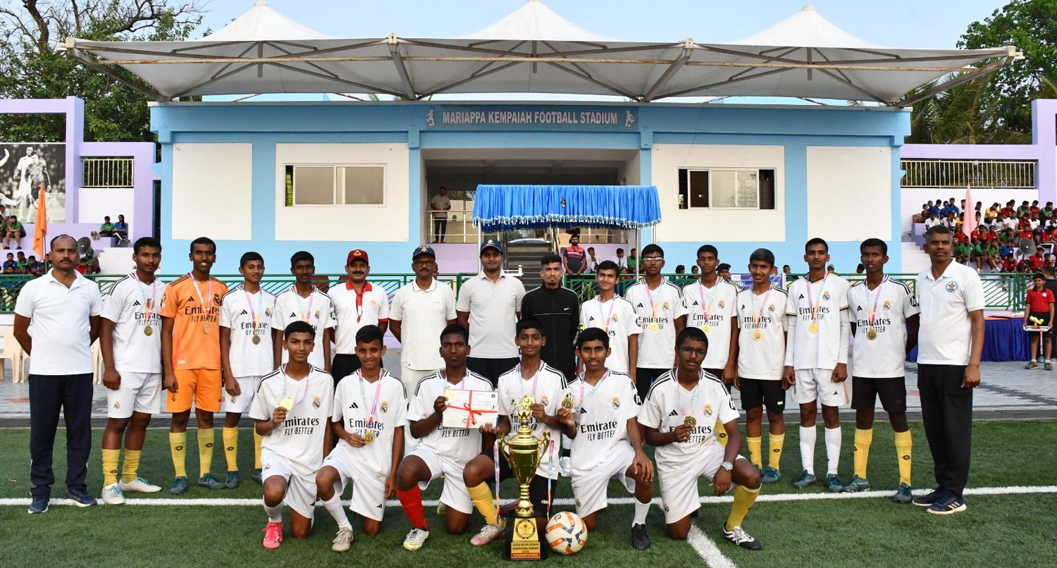 The closing ceremony was graced by Wg Cdr P Prakash Rao, Administrative Officer of Sainik School Kodagu, who felicitated the winners and participants. The winning team was awarded the trophy, gold medals, and certificates, while the runners-up received the trophy, silver medals, and certificates. The Best Player and Best Goalkeeper were presented with mementoes, gold medals, and certificates. All other participants were awarded participation certificates.