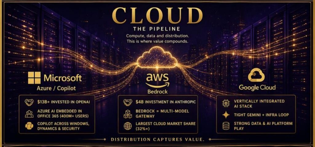 Companies like Microsoft, Amazon Web Services, and Google Cloud control how AI reaches businesses.